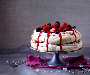 Pavlova de framboesa é uma sobremesa clássica que se originou na Austrália e na Nova Zelândia. Ela é feita com merengue crocante por fora e macio por dentro, coberto com chantilly e frutas frescas. A pavlova é uma delícia que agrada a todos os paladares e é muito versátil, podendo ser feita com diversas frutas, como morango, kiwi, pêssego e framboesa.